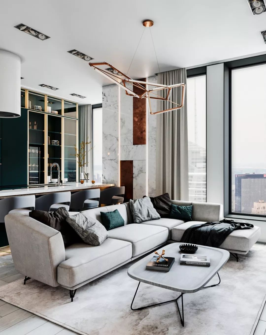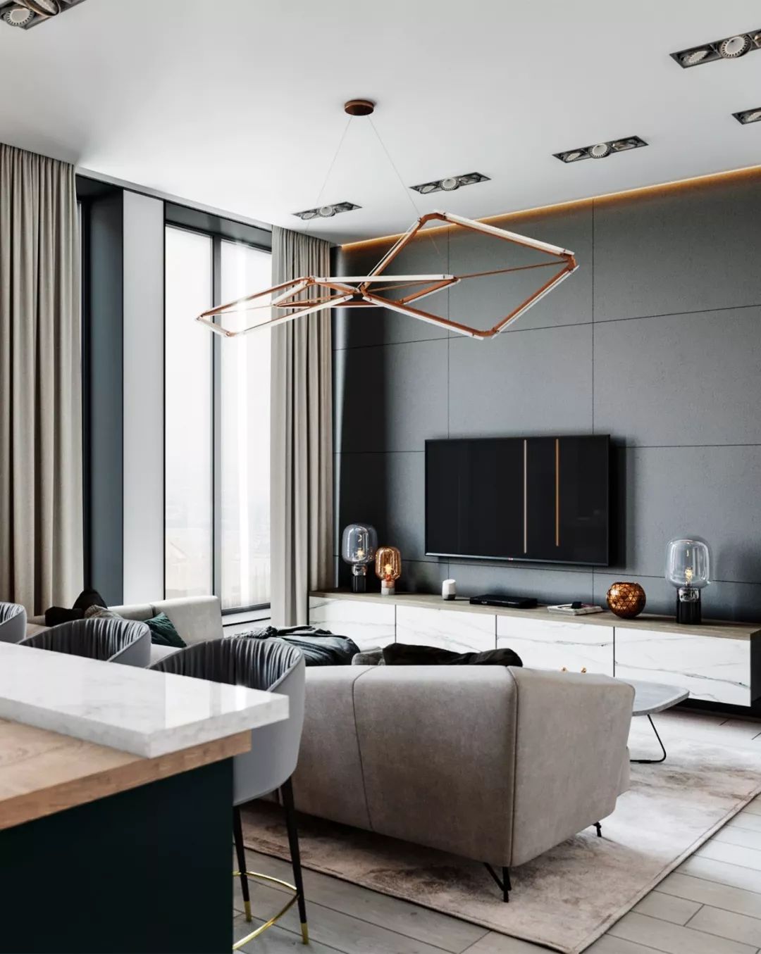 房屋装修确定风格十分重要,如今,房屋装修的风格多种多样,选择面也是十分宽广,今天我们重点来欣赏100平米住宅现代风格室内设计效果图。无论是质地还是外观都给人现代奢华的视觉效果,整体空间通过不同色调来营造不一样的效果,空调和次卧以灰色调为主色调打造出高级精致感;厨房运用绿色点缀带来视觉冲击效果;卫生间采用白色与金色,给人贵族般的视觉体验。