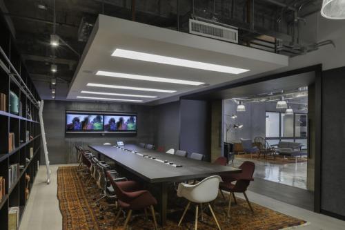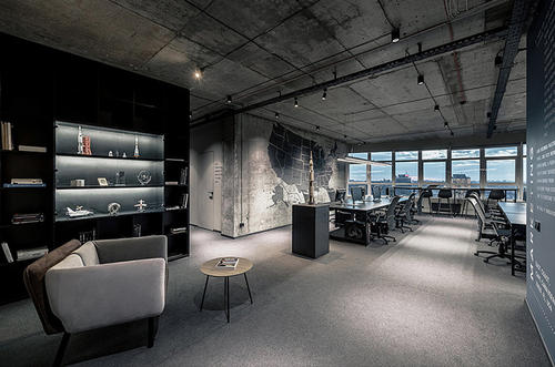 工业风格的办公室给人都是比较色彩单一的,主要采用黑白灰三色调为主色调进行装修设计,来达到整体的视觉效果。通过黑白灰的主色调在配以少量辅色调进行点缀装修,可以使得整个空间给人更加统一,视觉效果也比较好。