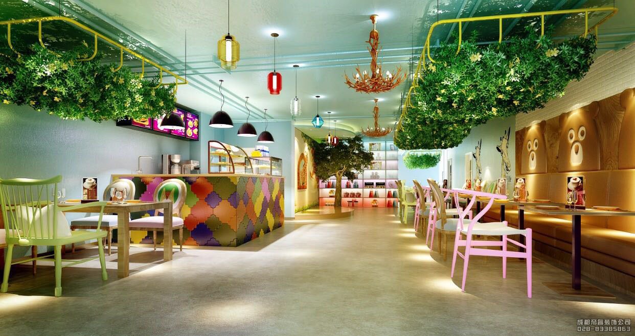 3.灯光色彩:灯光色彩是对儿童主题餐厅氛围营造的重要因素。要注意选择欢快、明亮的灯光色彩,营造温馨、舒适的童趣世界,激发孩子们的食欲。小孩子们对鲜艳的色彩是比较偏爱的,因此注意避免选择冷色调进行大面积装饰,可以暖色调为主,冷色调为辅,相辅相成,共同营造。