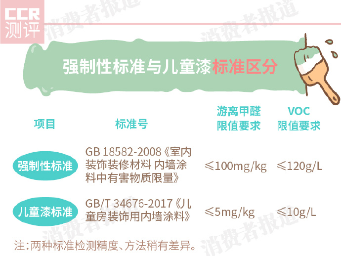 目前各个品牌包装上执行的仍是18582-2008《室内装饰装修材料内墙涂料中有害物质限量》或普通乳胶漆的推荐性标准GB/T 96-2009《合成树脂乳液内墙涂料》。外包装上印有儿童漆推荐性国标GB/T 34676-2017 《儿童房装饰用内墙涂料》的只有紫?;ā?/strong>